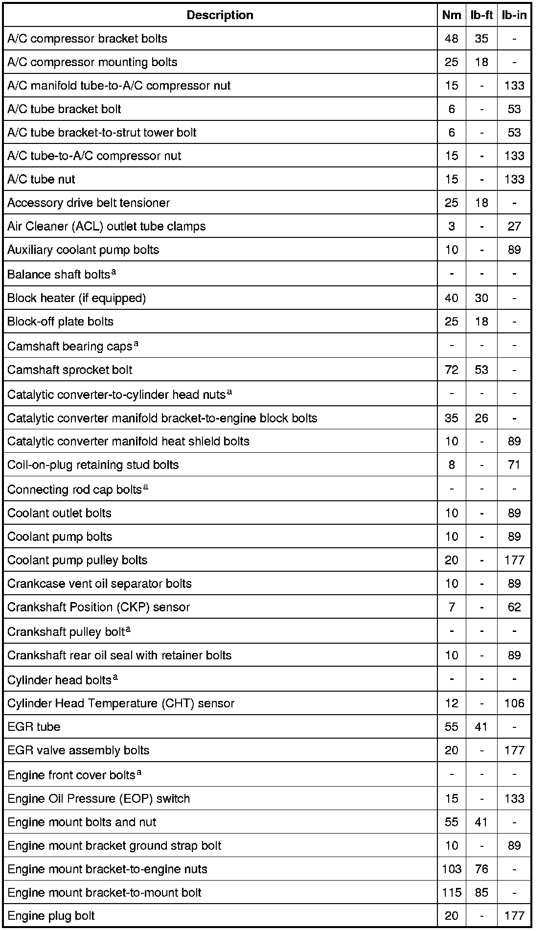 Torque Specifications