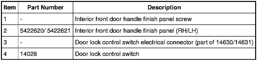 1. Open the cover, remove the screw and position the interior front door handle finish panel aside.