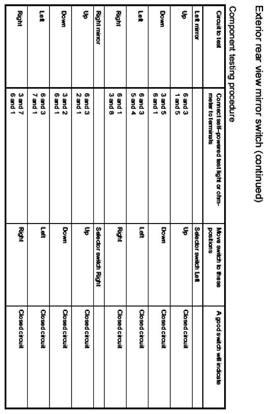 Power Mirror Switch: Testing and Inspection