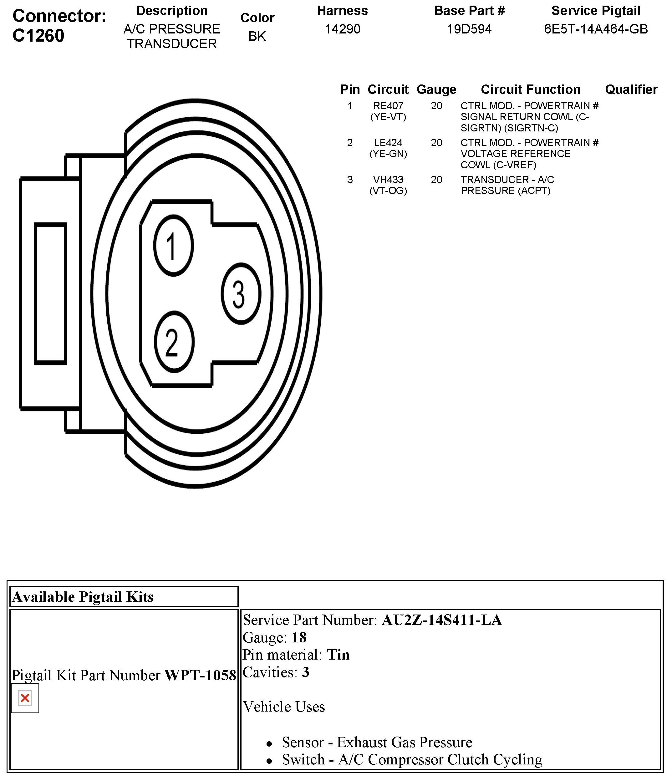 Refrigerant Pressure Sensor / Switch, HVAC