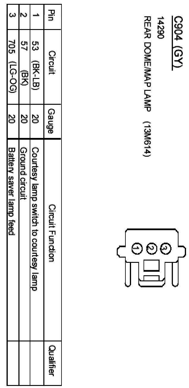 Connector Views show the views of the pins and/or cavities of all connectors. The pin and cavity sides are shown separately as if the connector were disconnected. The color of the connector housing is indicated next to the connector number when available. The harness causal number is located above the connector view and below the connector number. The circuit function charts are located below each connector. The wiring harness designations are listed in Component Location Charts.
