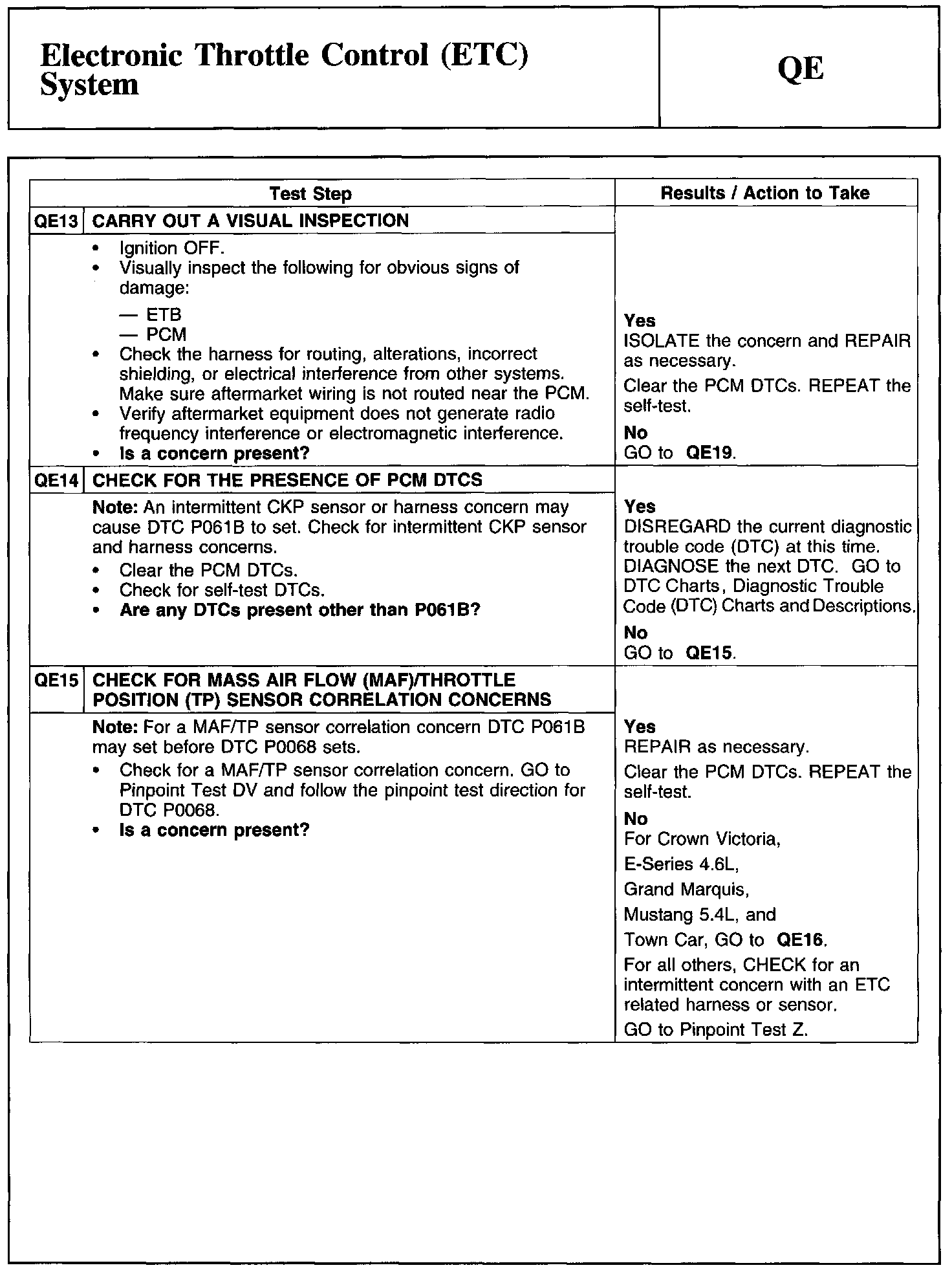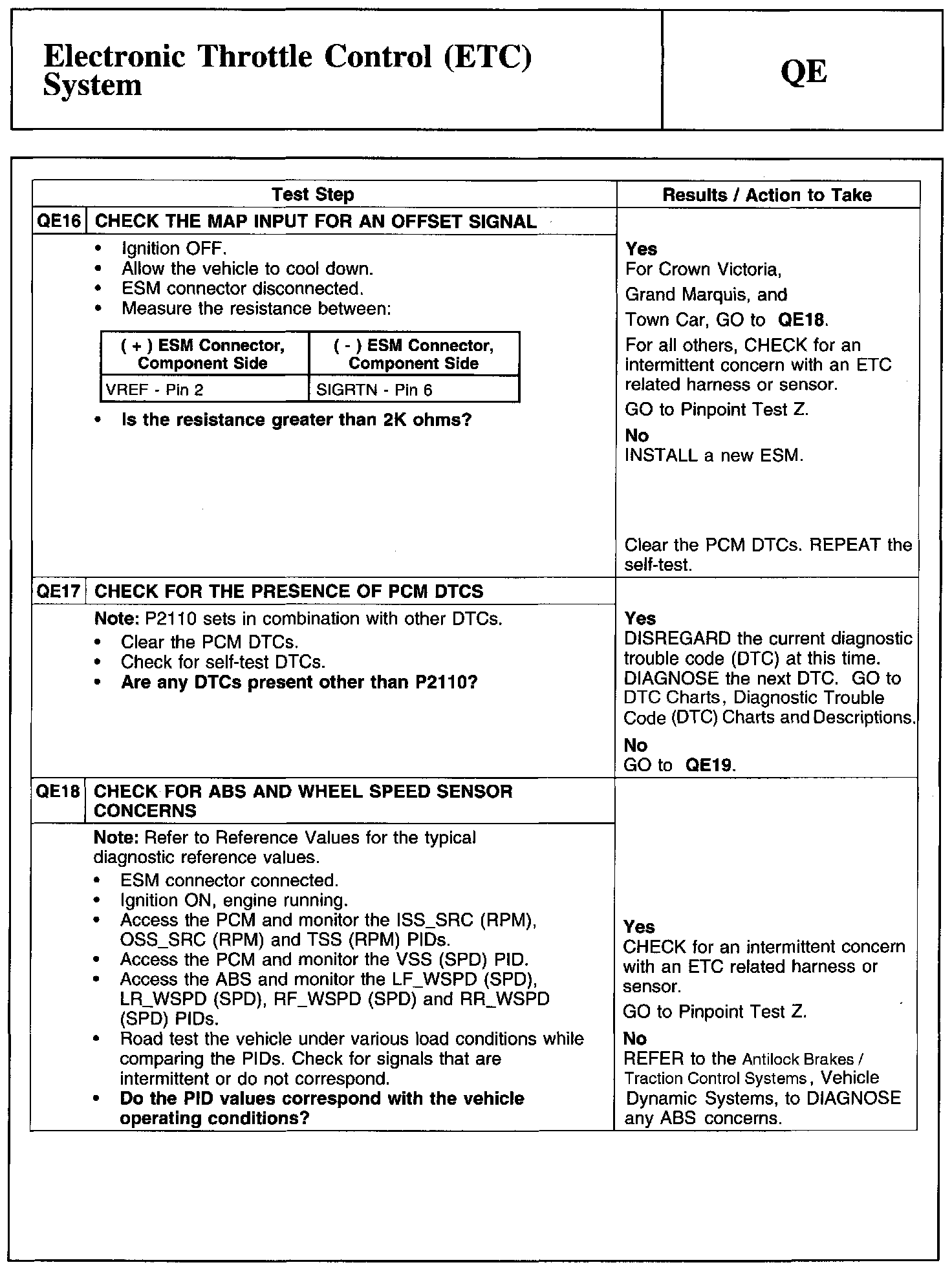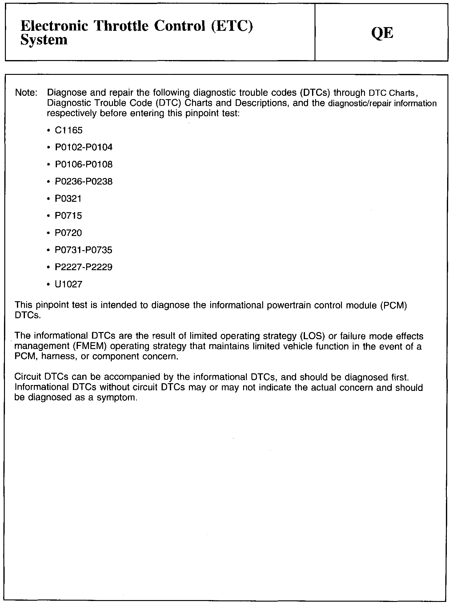PINPOINT TEST QE: ELECTRONIC THROTTLE CONTROL (ETC) SYSTEM