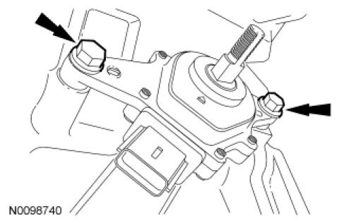 5. Remove the 2 bolts, slide the TR sensor off of the manual shaft and remove the TR sensor.