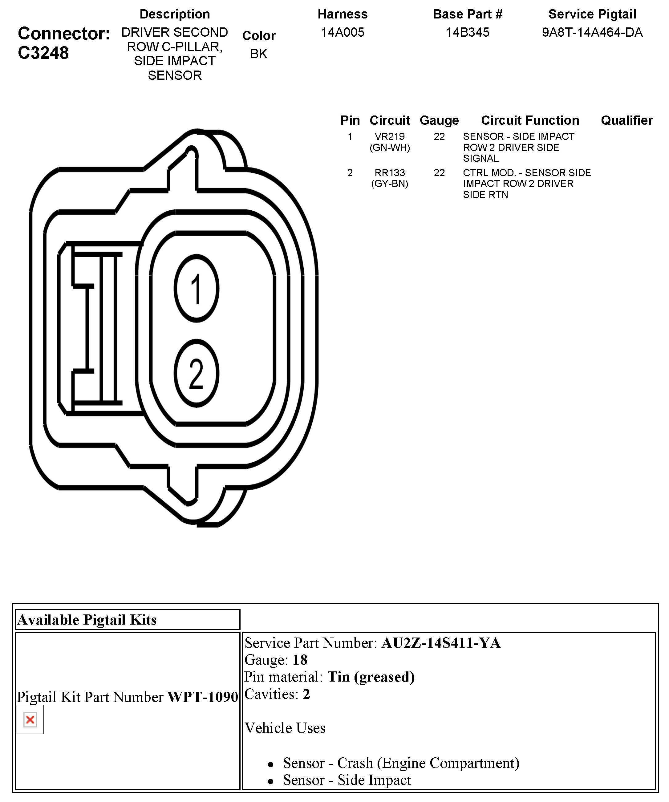 C3248 Driver Second Row C-Pillar, Side Impact Sensor