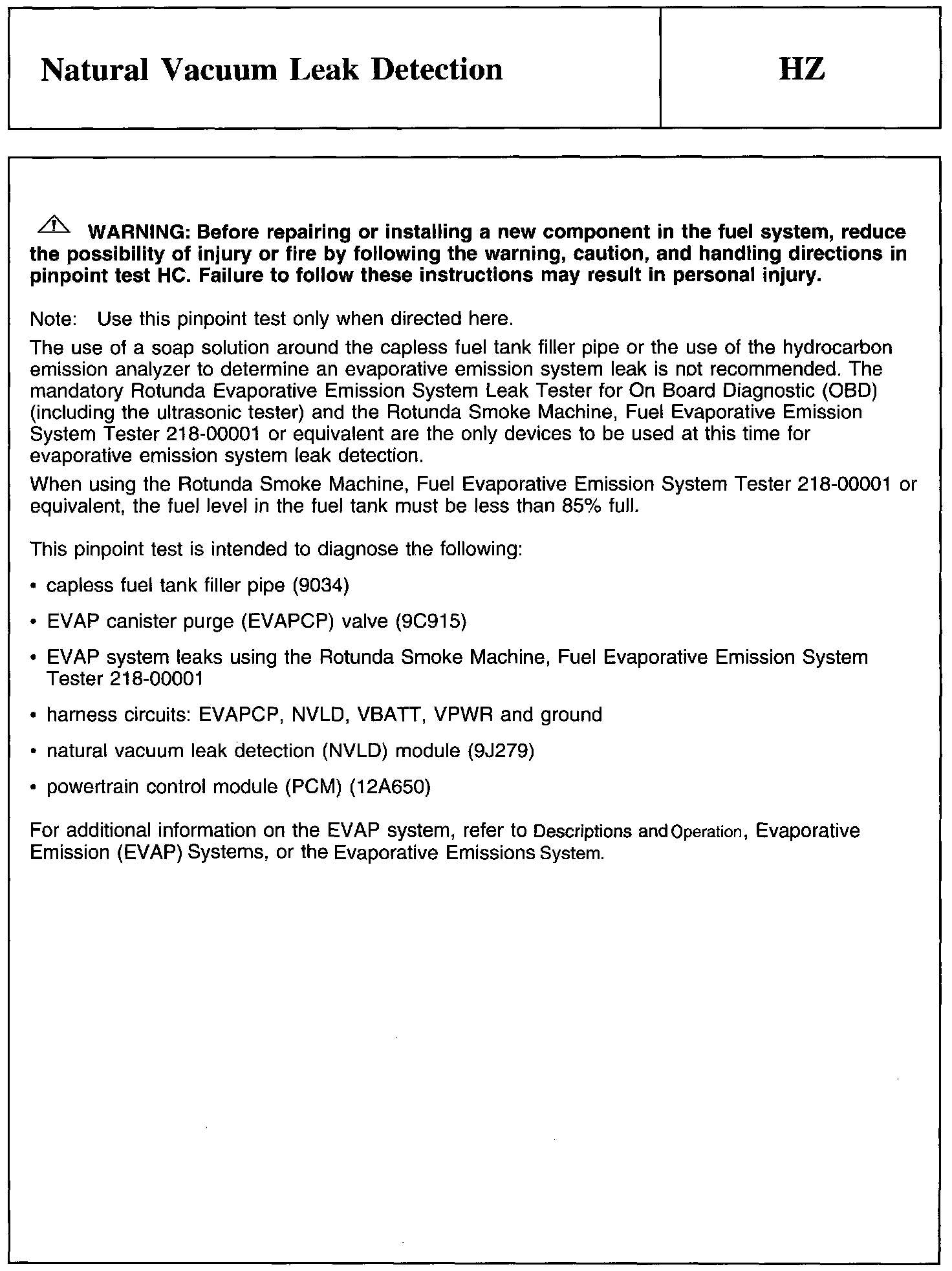 PINPOINT TEST HZ: NATURAL VACUUM LEAK DETECTION