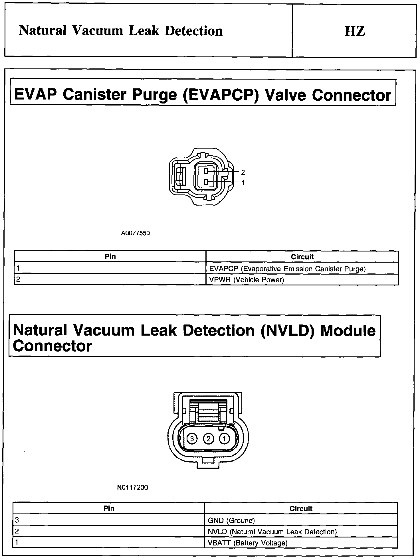 EVAP Canister Purge (EVAPCP) Valve Connector And Natural Vacuum Leak Detection (NVLD) Module Connector: