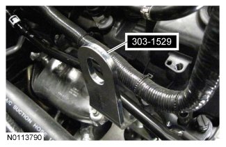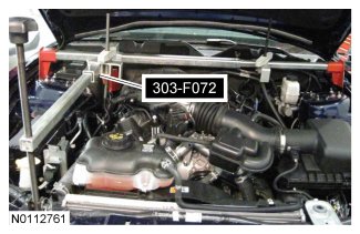 12. NOTICE: Do not position the legs of the Engine Support Bar on the fenders. instead, position the legs on the body structure near the suspension strut tower. Failure to follow these instructions may result in body damage.