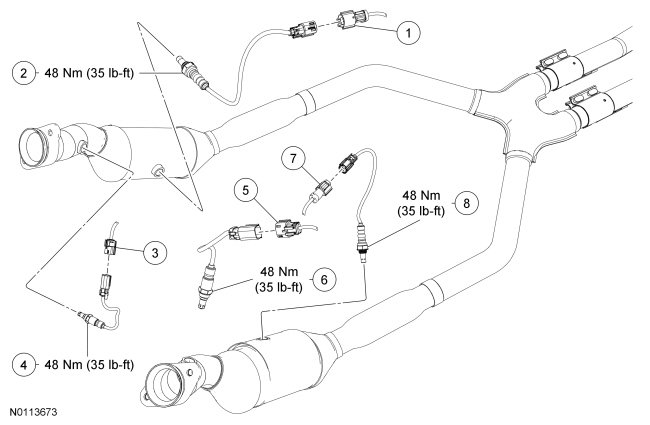 NOTE: The correct torque wrench setting must be calculated when using the Exhaust Gas Oxygen Sensor Socket to install the HO2S and/or CMS.