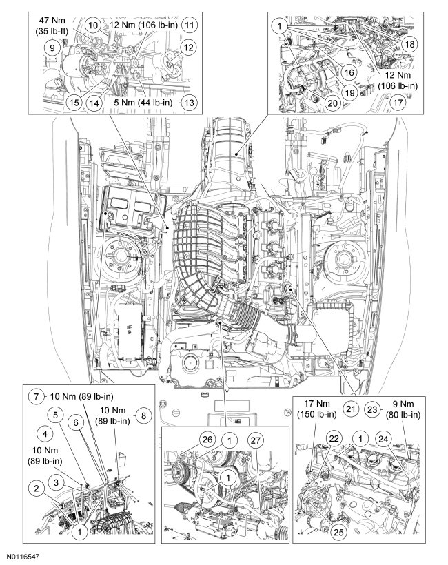 1. With the vehicle in NEUTRAL, position it on a hoist. For additional information, refer to Jacking and Lifting Service and Repair.