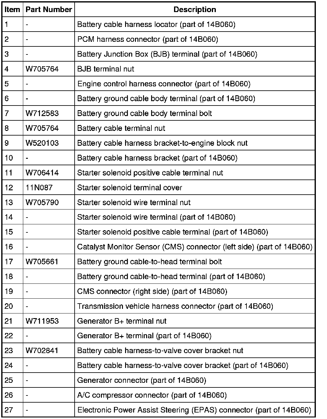 11. Remove the nut and position the battery cable harness bracket-to-engine aside.