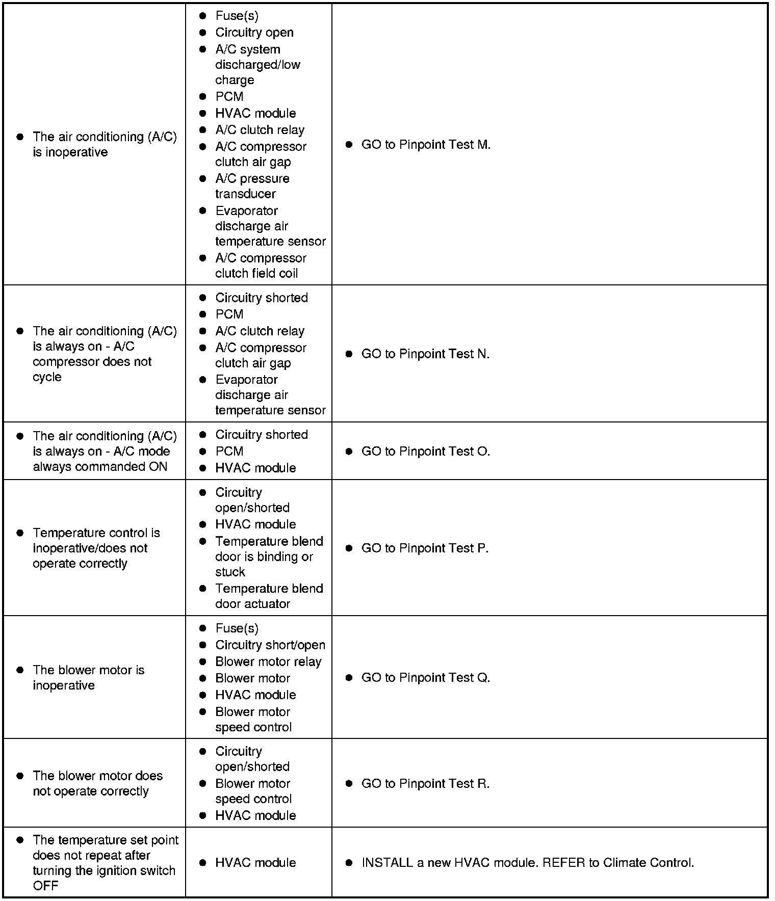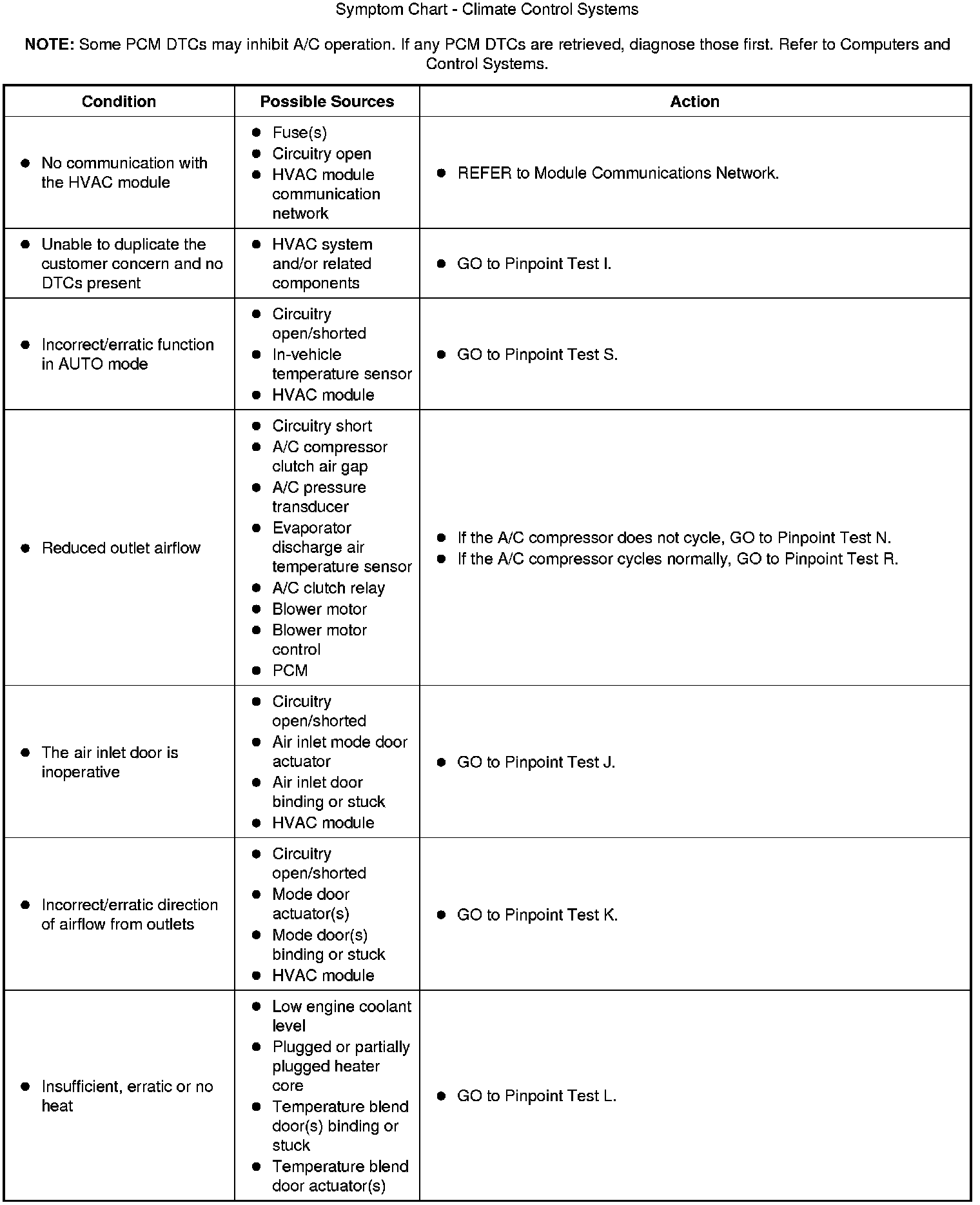Symptom Chart - Climate Control Systems