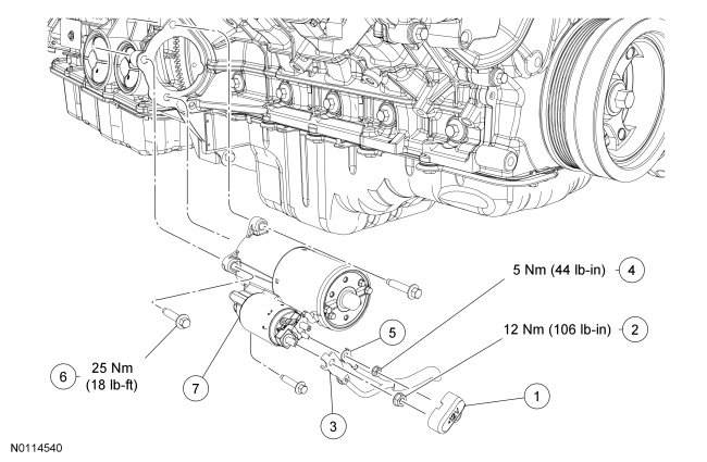 - Tighten the lower 2 bolts to 25 Nm (18 lb-ft).