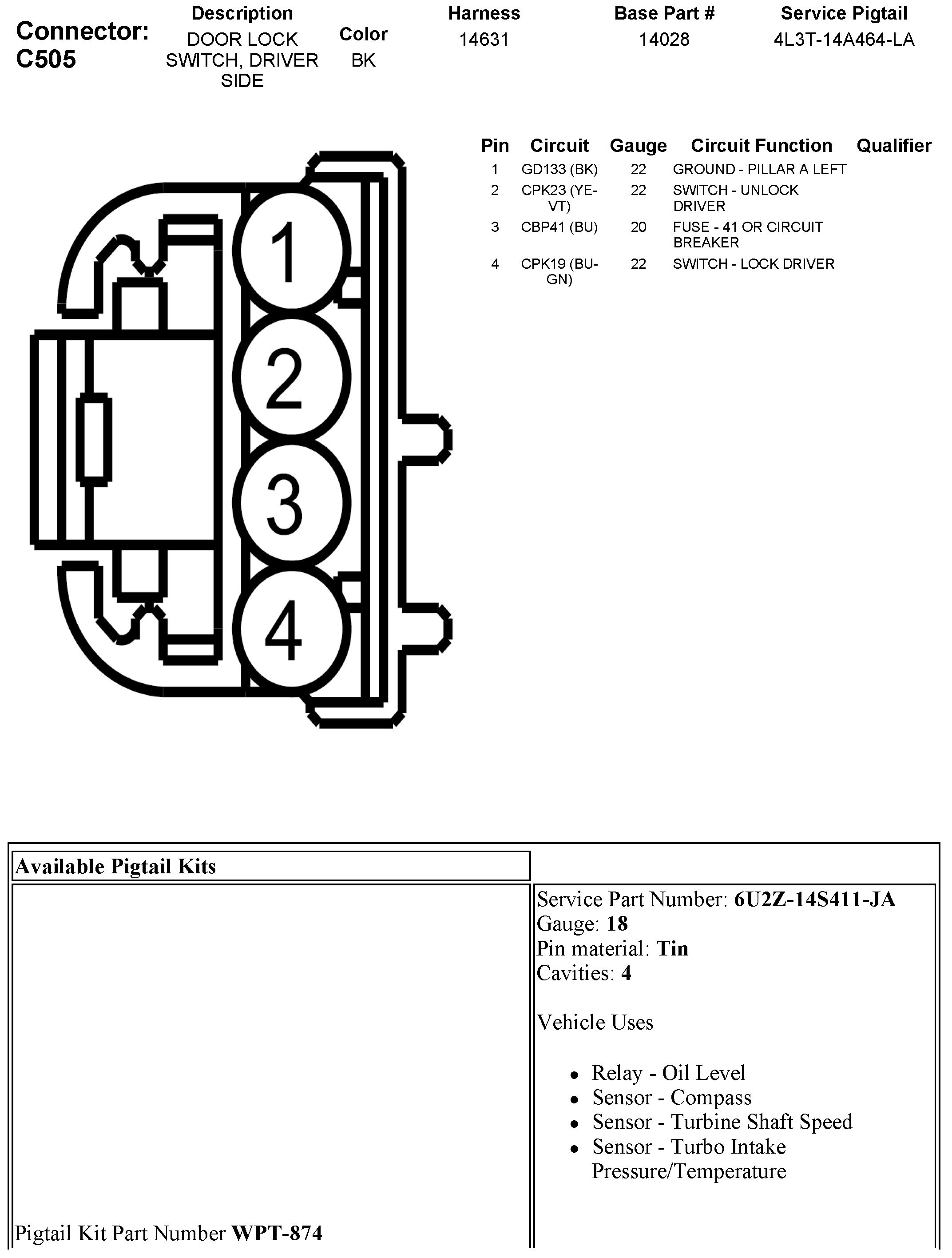 C505 Door Lock Switch, Driver Side