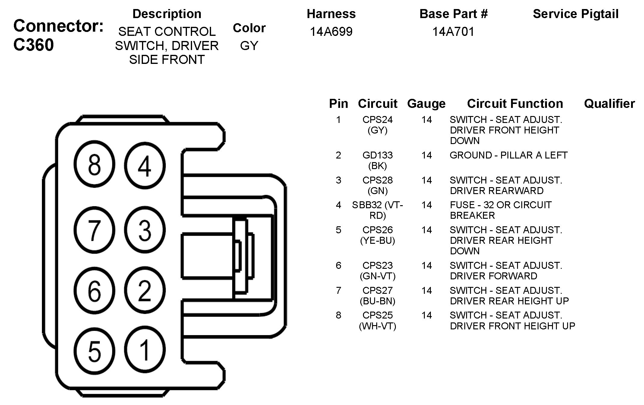 C360 Seat Control Switch, Driver Side Front