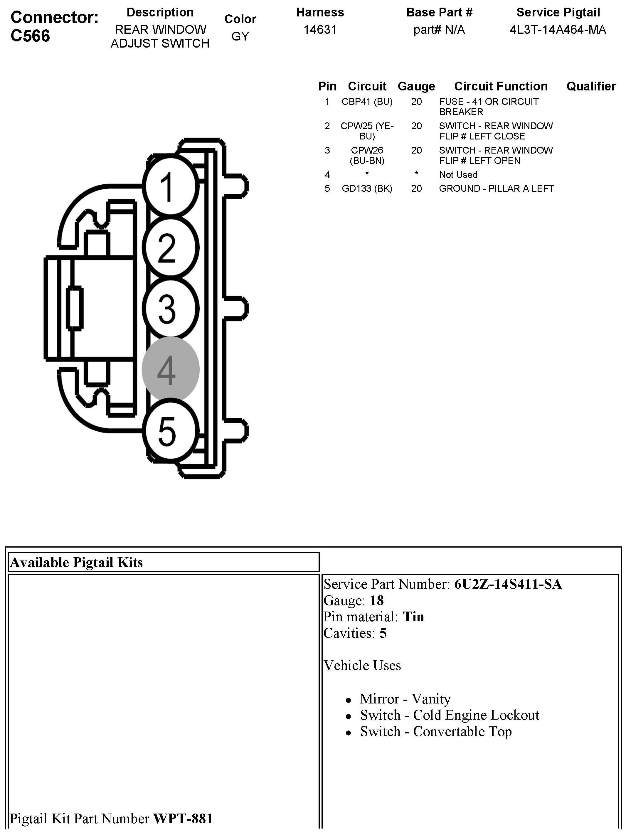 C566 Rear Window Adjust Switch