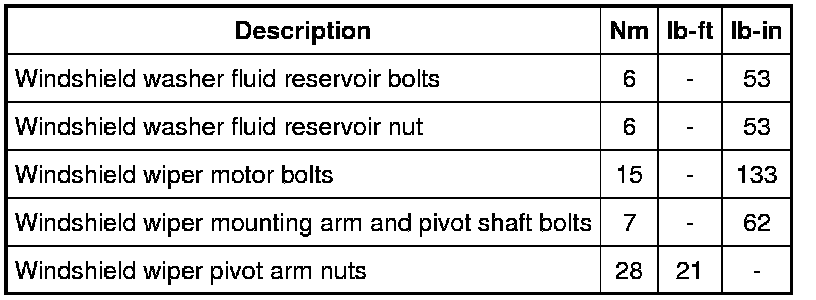 Torque Specifications