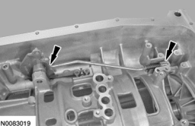 7. Position the manual valve detent lever and park pawl actuator rod assembly in the transmission case.
