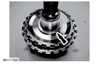 16. Install the T11 bearing, on the planetary ring gear and output shaft assembly.