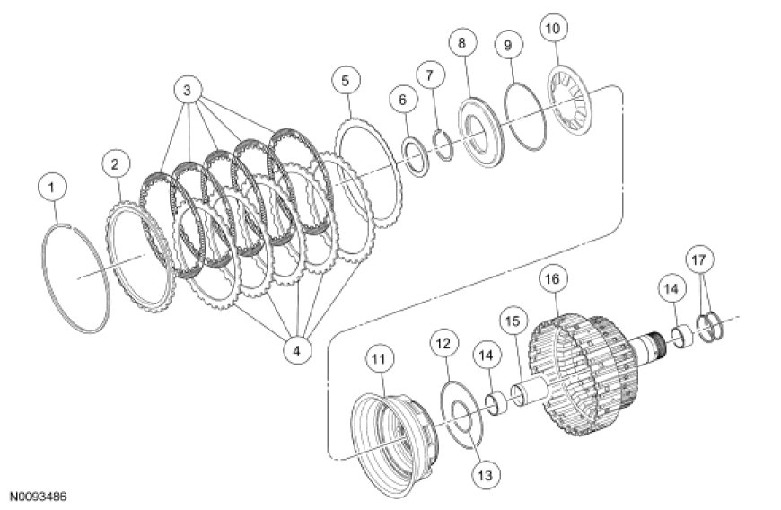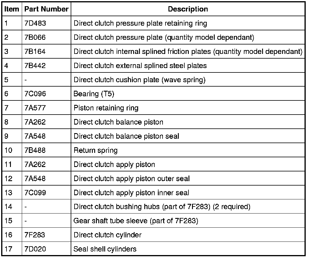 12. Inspect the components of the direct clutch for damage. If damage is indicated, install new components as necessary.