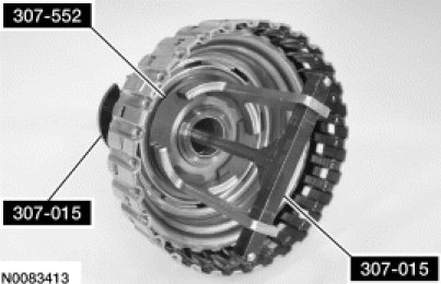 7. Using the Clutch Spring Compressors, compress the direct clutch return spring and install the direct clutch return spring retainer.