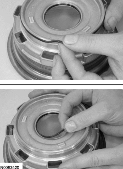 3. Lightly coat the O-ring seals in clean transmission fluid and install the direct clutch piston.