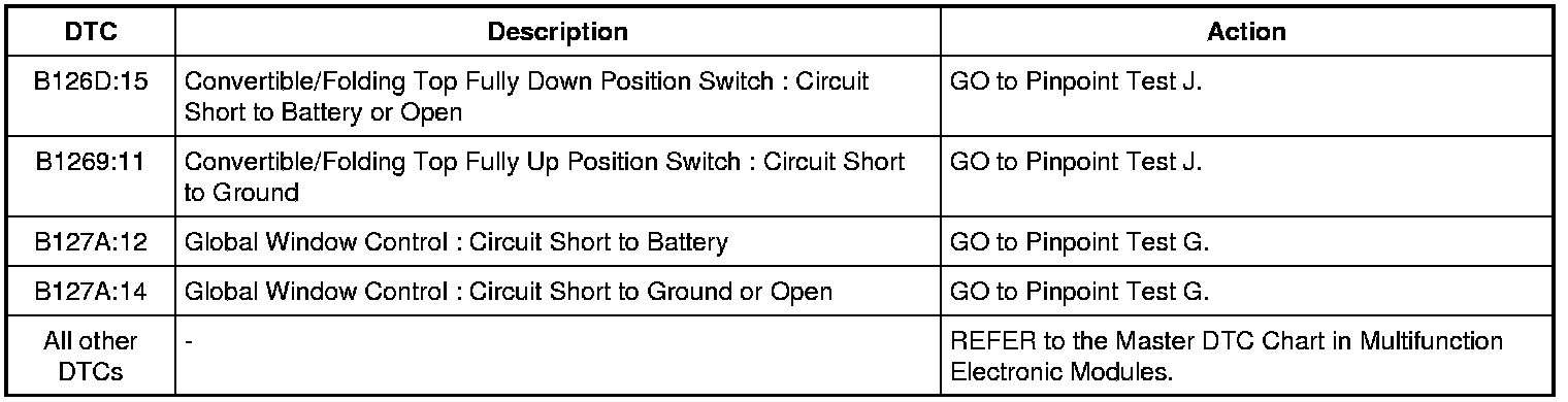 NOTE: This module utilizes a 5-character DTC followed by a 2-character failure type code. The failure type code provides information about specific fault conditions such as opens or shorts to ground. Continuous Memory Diagnostic Trouble Codes (CMDTCs) have an additional 2-character DTC status code suffix to assist in determining DTC history.