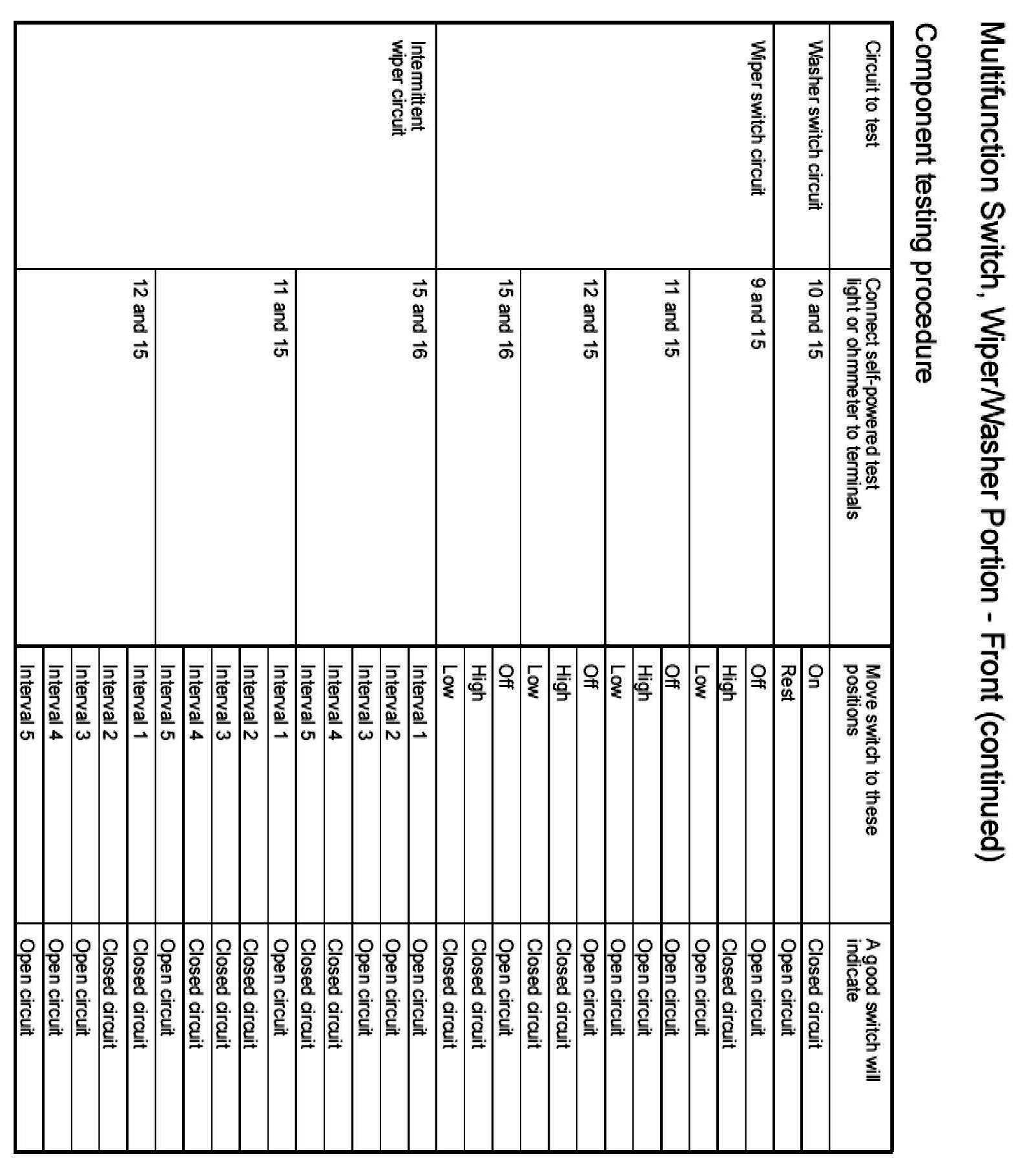 Wiper Switch: Testing and Inspection