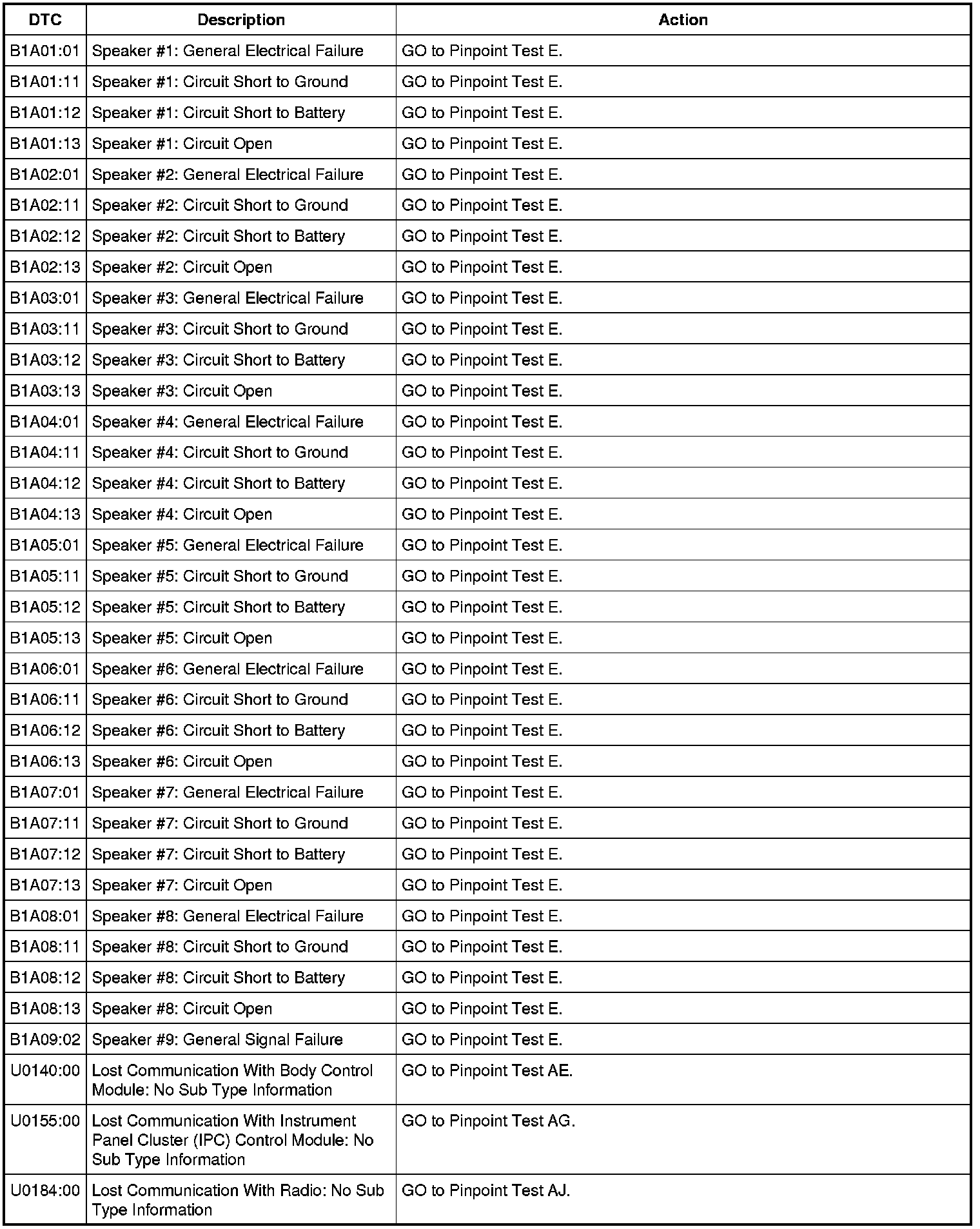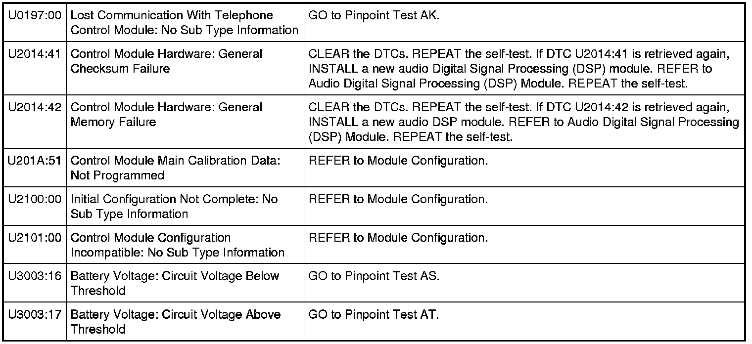 NOTE: This module utilizes a 5-character DTC followed by a 2-character failure-type code. The failure-type code provides information about specific fault conditions such as opens, or shorts to ground. Continuous memory DTCs have an additional 2-character DTC status code suffix to assist in determining DTC history.