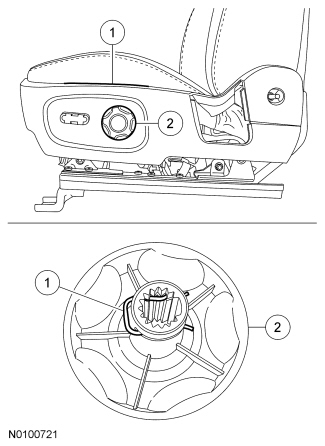 5. If equipped, install the manual lumbar handle in the following sequence.