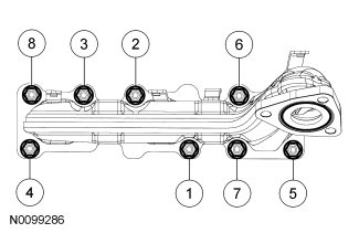 Install a new gasket, RH exhaust manifold and 8 new nuts. Tighten in 2 stages in the sequence shown: