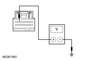 - Measure the voltage between the FDIM C2123-5, circuit CMN23 (WH/BU), harness side and ground.