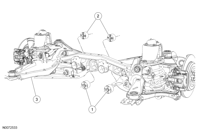 NOTE: There are 2 Rear Drive Unit (RDU) rear bushings in the rear subframe, this procedure shows how to remove one bushing. The procedure for the remaining RDU bushing is identical.