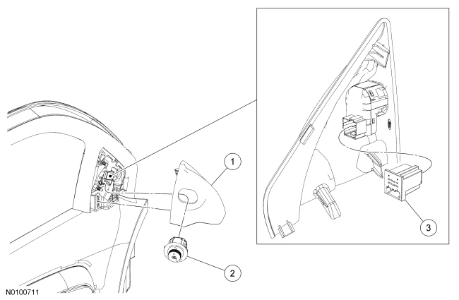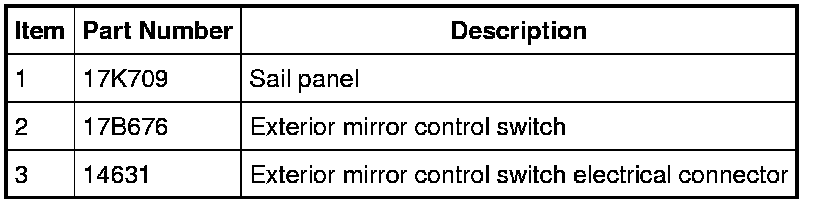 2. Depress the 2 locking tabs and remove the exterior mirror control switch.