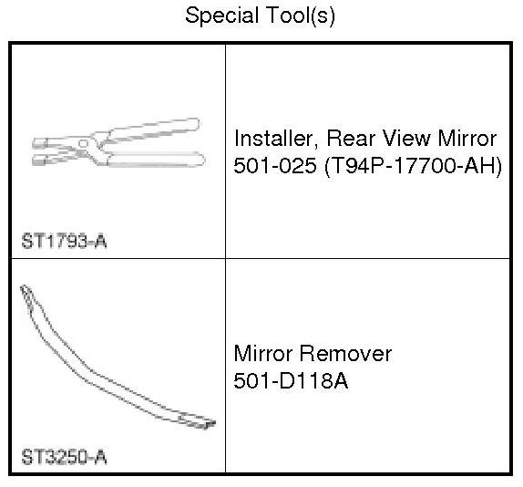NOTICE: This procedure should be used only for an interior rear view mirror with the top access mount. Otherwise, damage to the windshield glass may occur.
