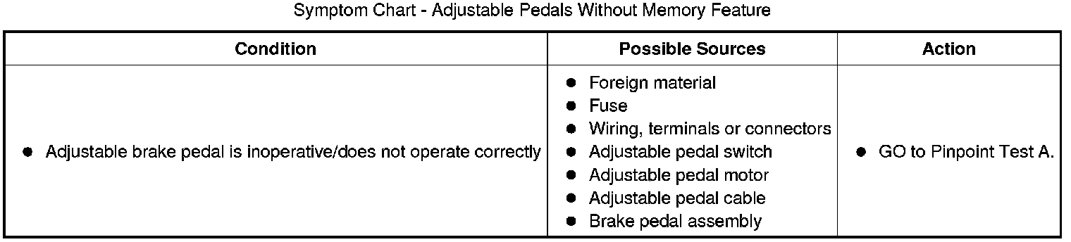 Symptom Chart - Adjustable Pedals Without Memory Feature