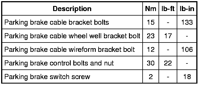 Parking Brake System: Specifications