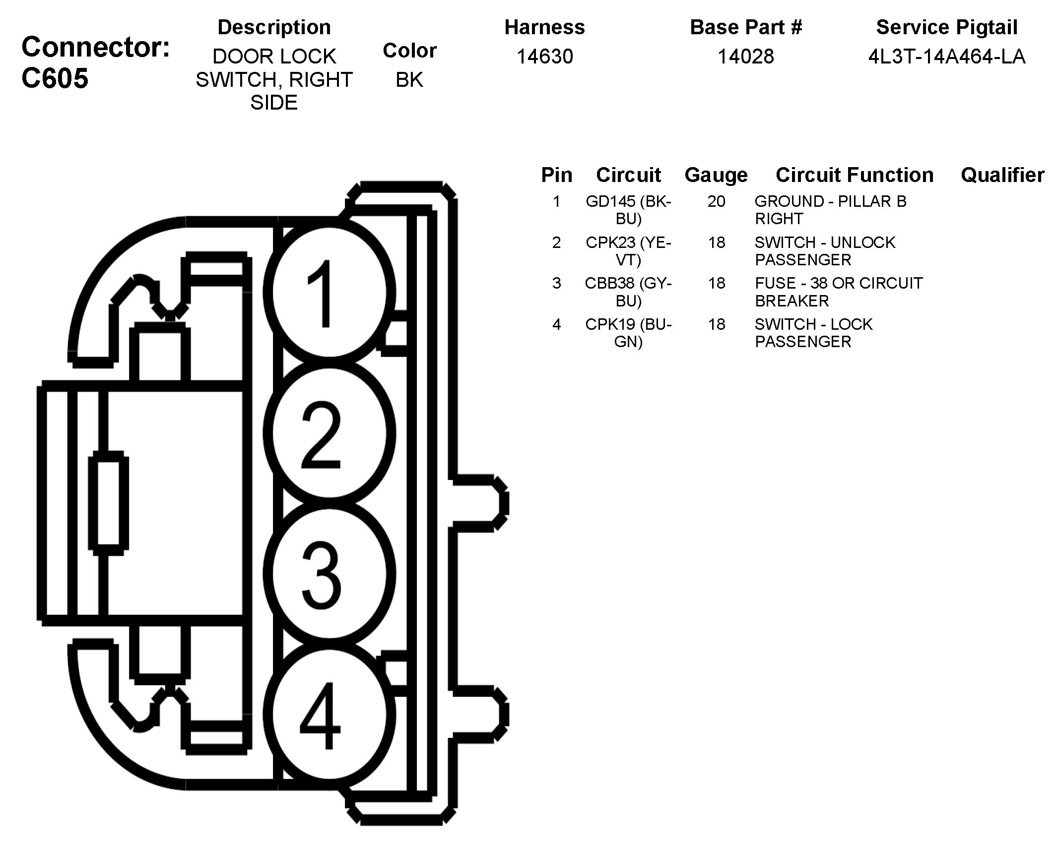 C605 Door Lock Switch, Right Side