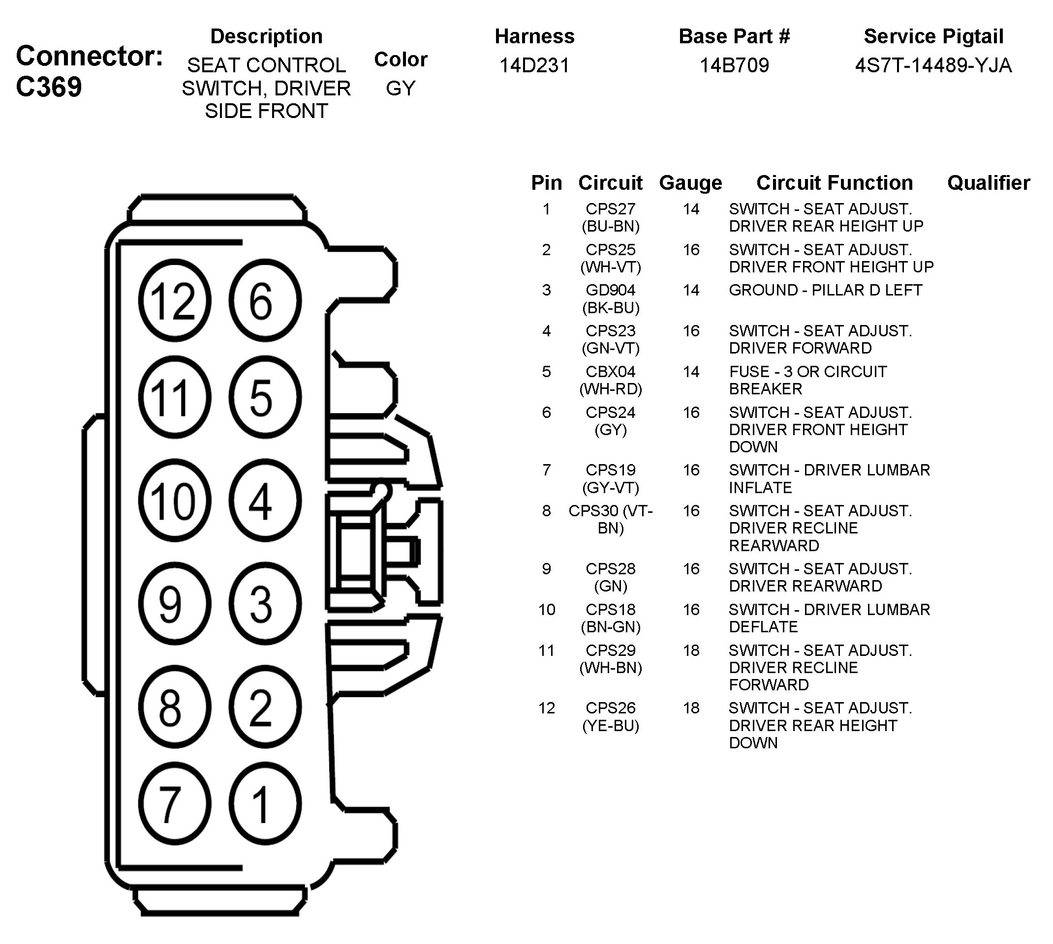 C369 Seat Control Switch, Driver Side Front