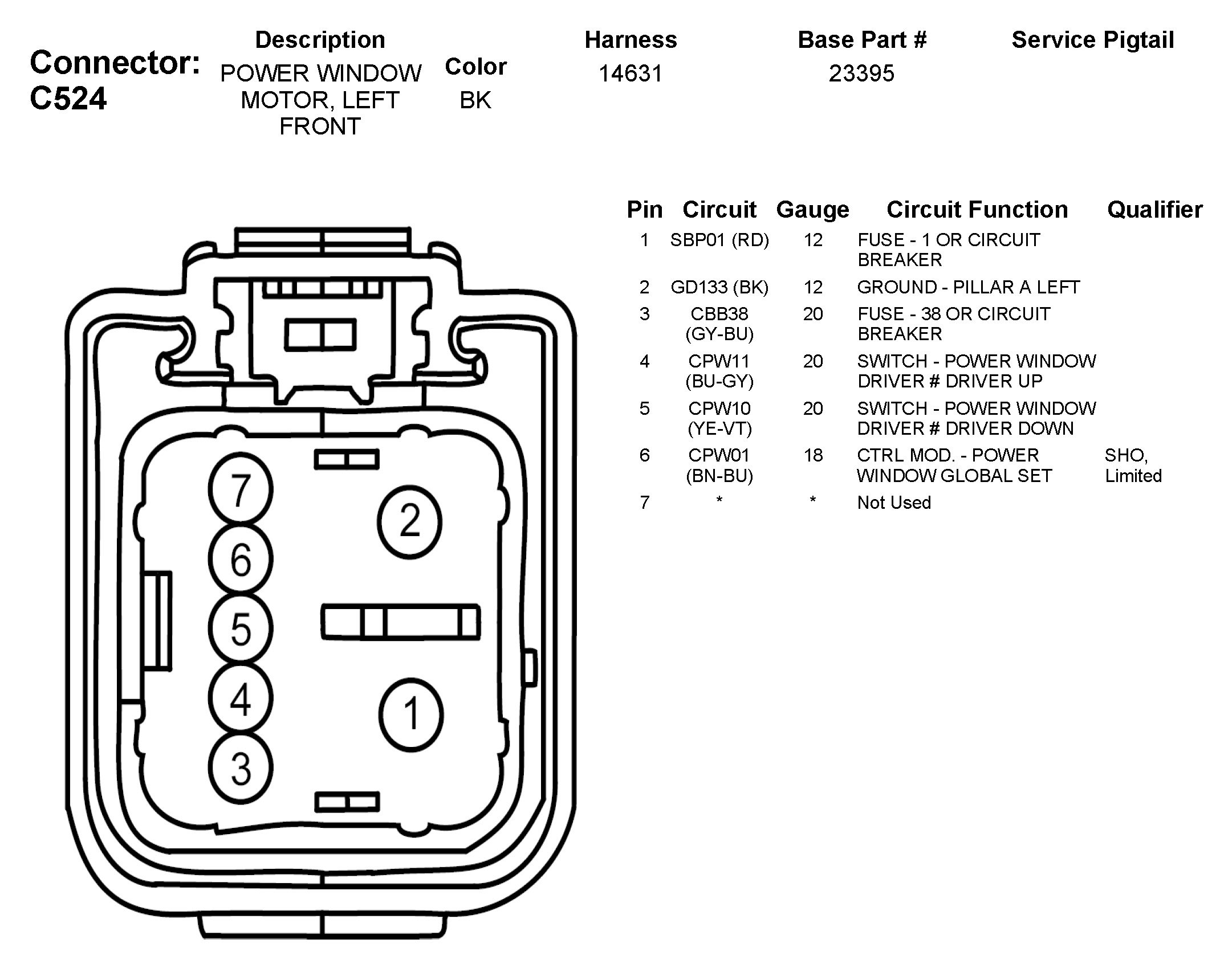 C524 Power Window Motor, Left Front