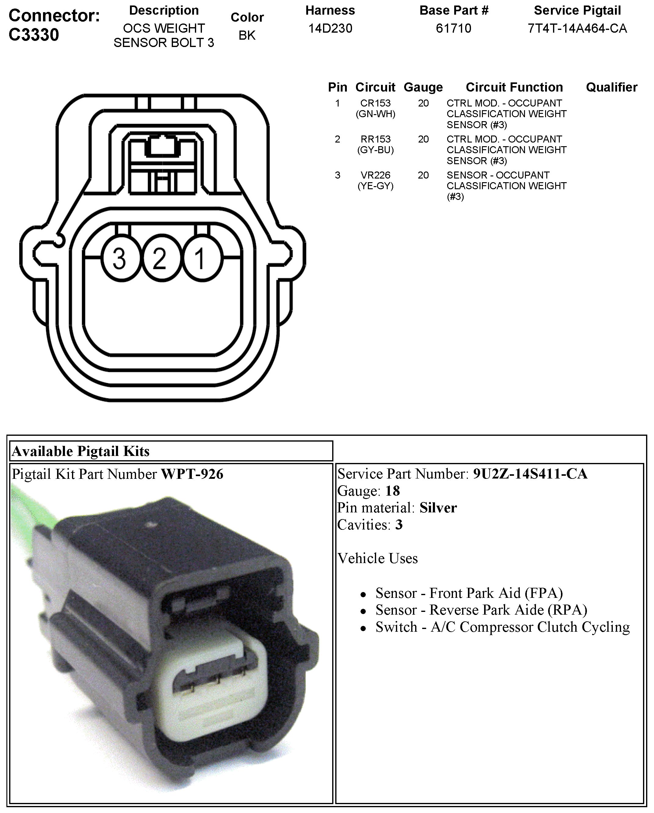 C3330 OCS Weight Sensor Bolt 3