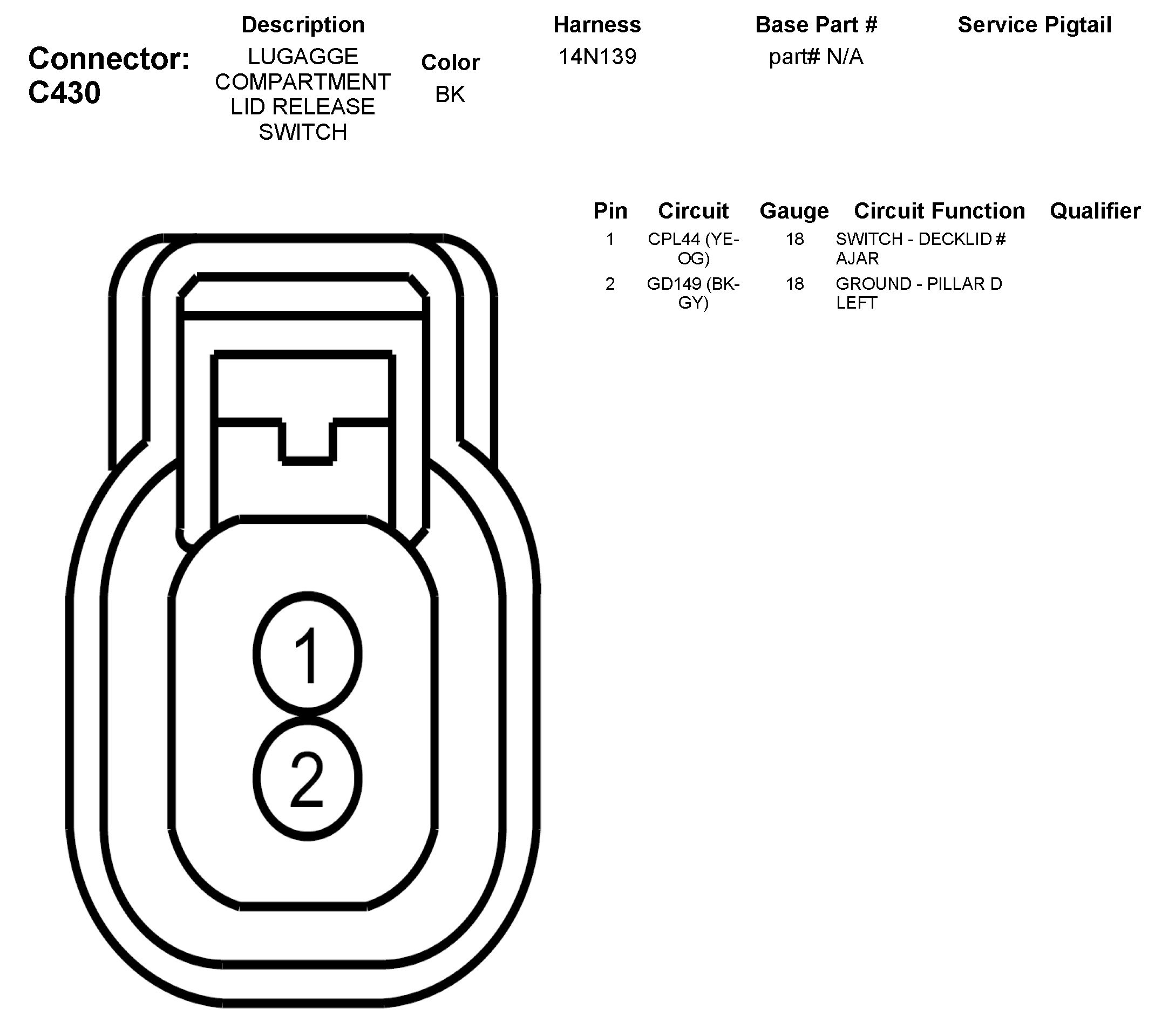 C430 Luggage Compartment Lid Release Switch