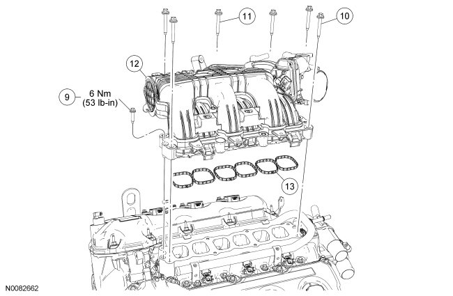 1. NOTICE: If the engine is repaired or replaced because of upper engine failure, typically including valve or piston damage, check the intake manifold for metal debris. If metal debris is found, install a new intake manifold. Failure to follow these instructions can result in engine damage.
