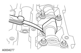 Rotate the LH camshafts to the TDC position and install the Camshaft Holding Tool on the flats of the camshafts.