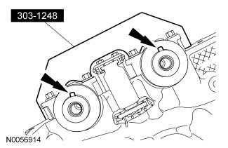 Rotate the RH camshafts to the Top Dead Center (TDC) position and install the Camshaft Holding Tool on the flats of the camshafts.