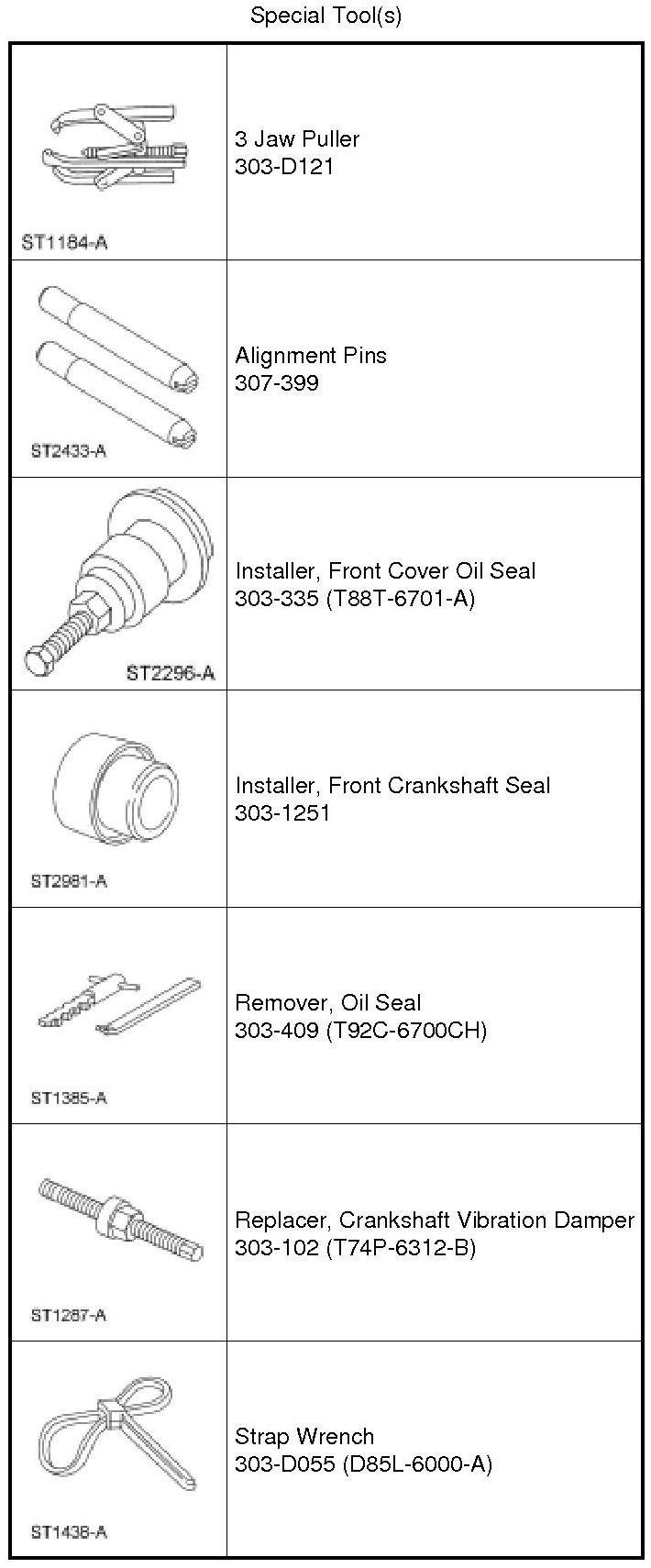 - Tighten the bolts one turn at a time in a crisscross pattern until the engine front cover-to-cylinder block seal is released.