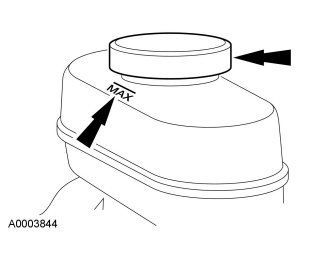 NOTICE: Do not spill brake fluid on painted or plastic surfaces or damage to the surface may occur. If brake fluid is spilled onto a painted or plastic surface, immediately wash the surface with water.