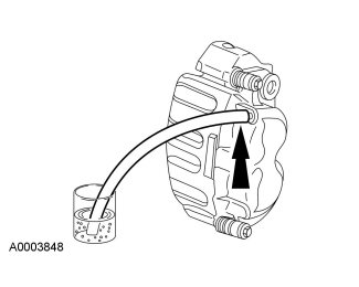 5. NOTE: Due to the complexity of the fluid path within the rear integral parking brake calipers, it is necessary to press and release the parking brake during the bleed procedure.