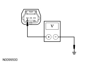 - Measure the voltage between the PSCM C1463a-3, circuit CBP34 (VT/BN), harness side and ground.