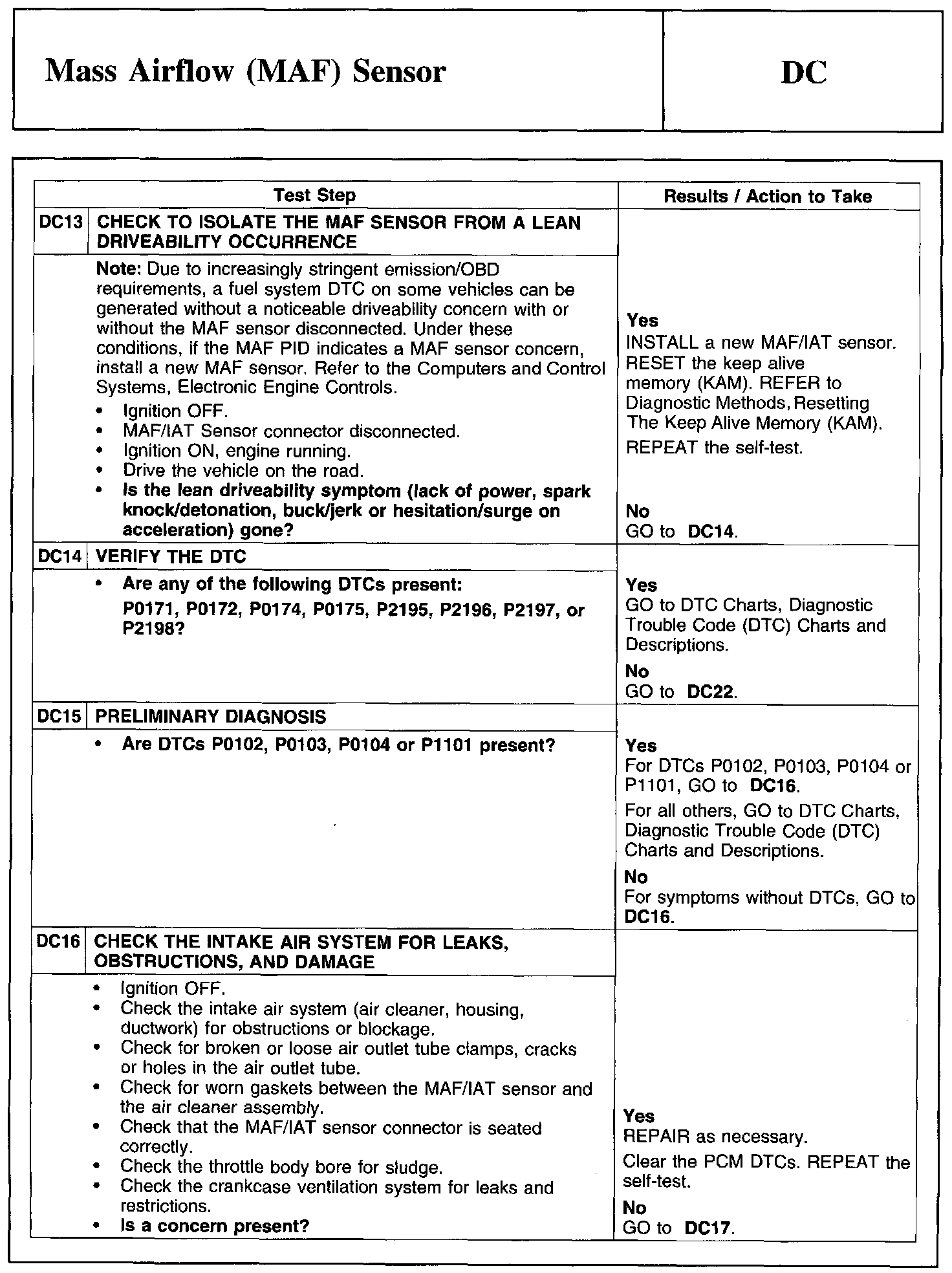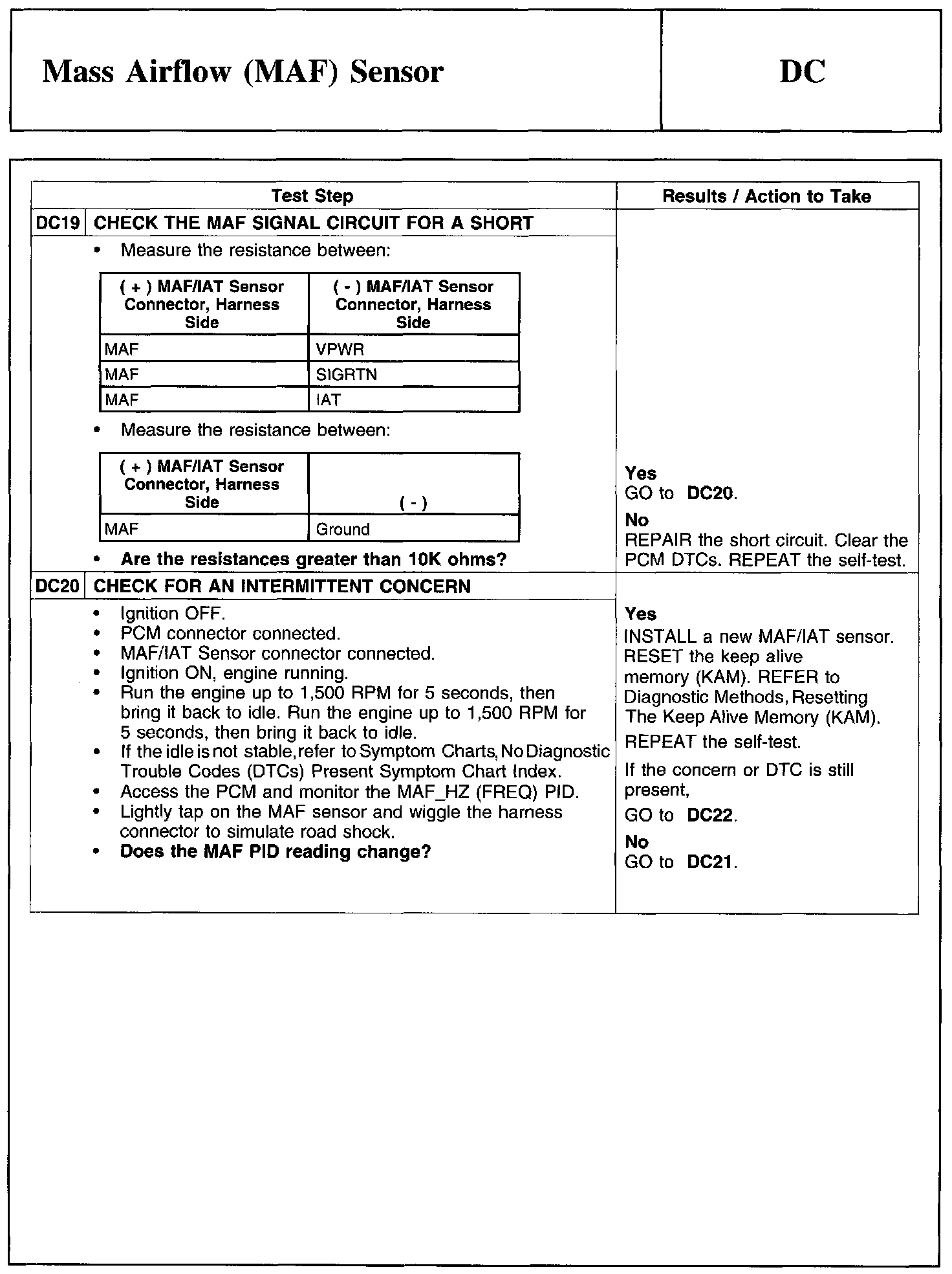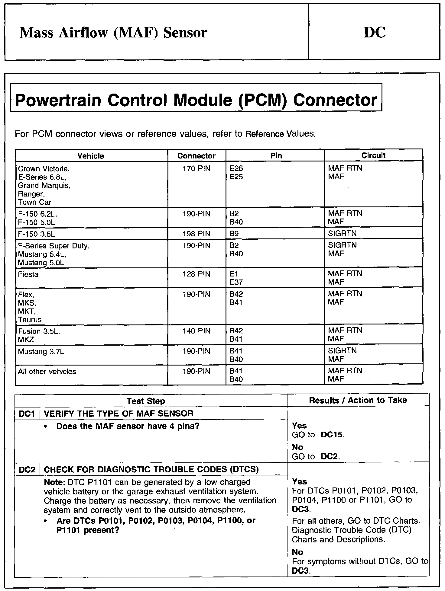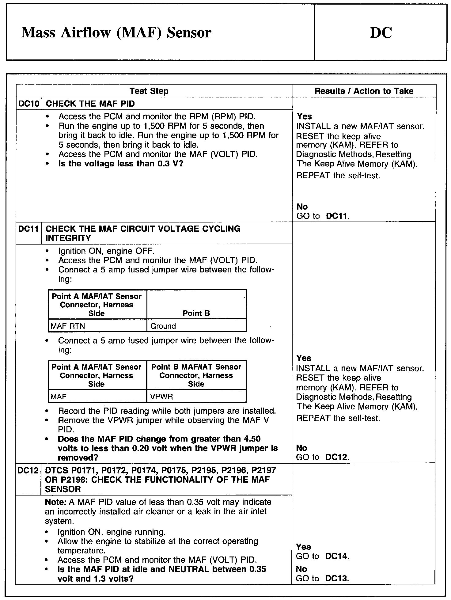 PINPOINT TEST DC: MASS AIRFLOW (MAF) SENSOR