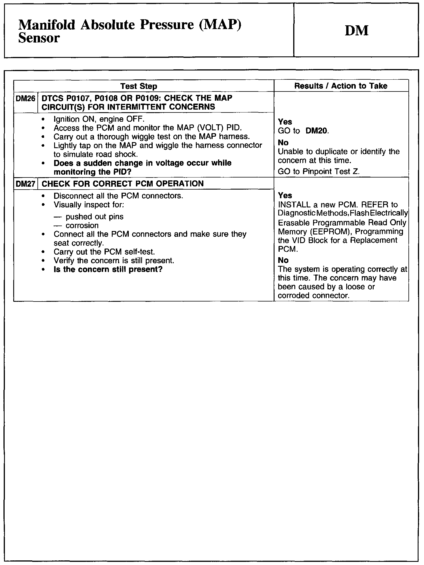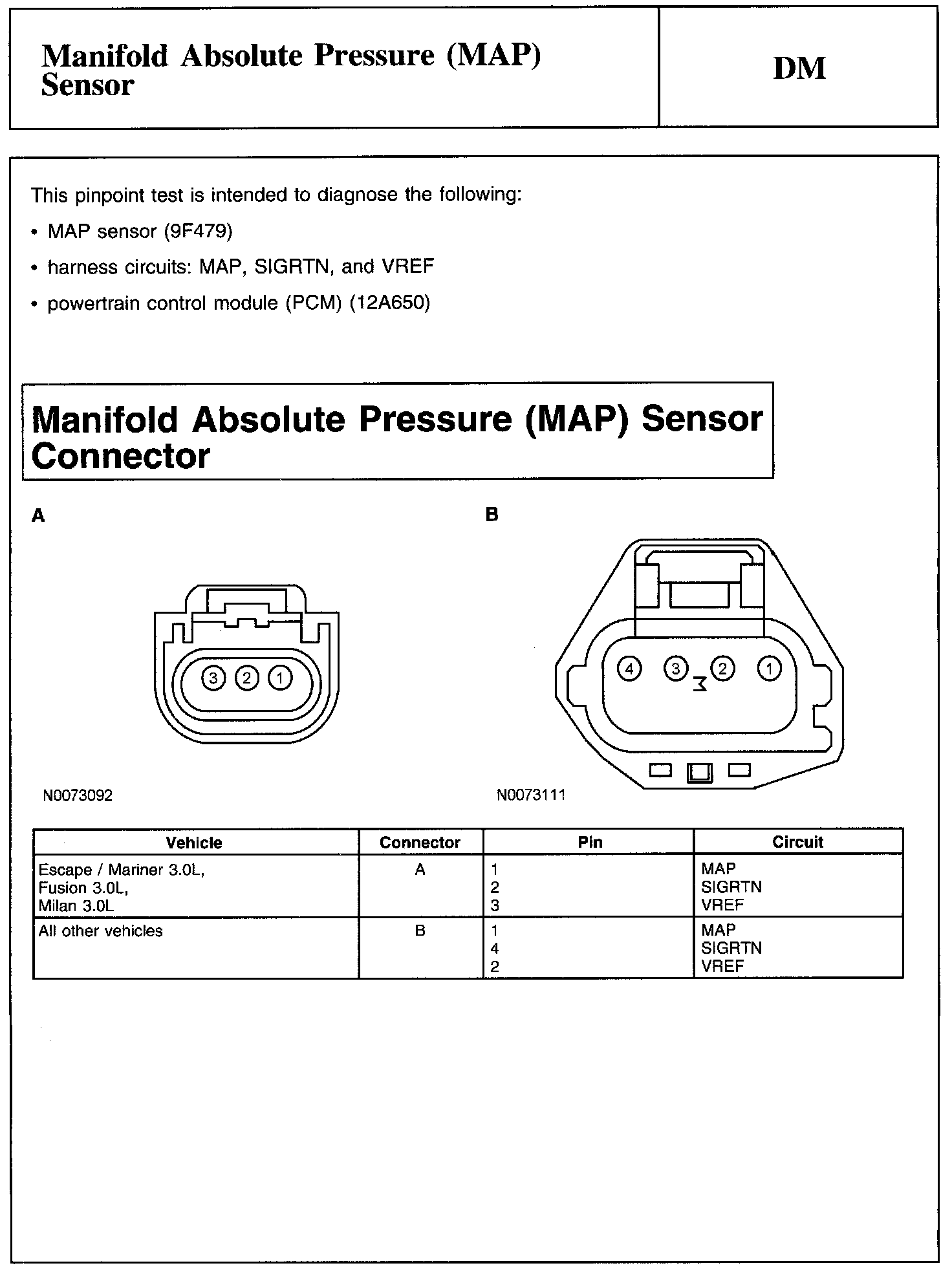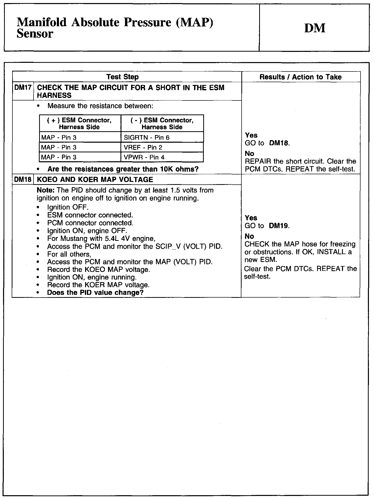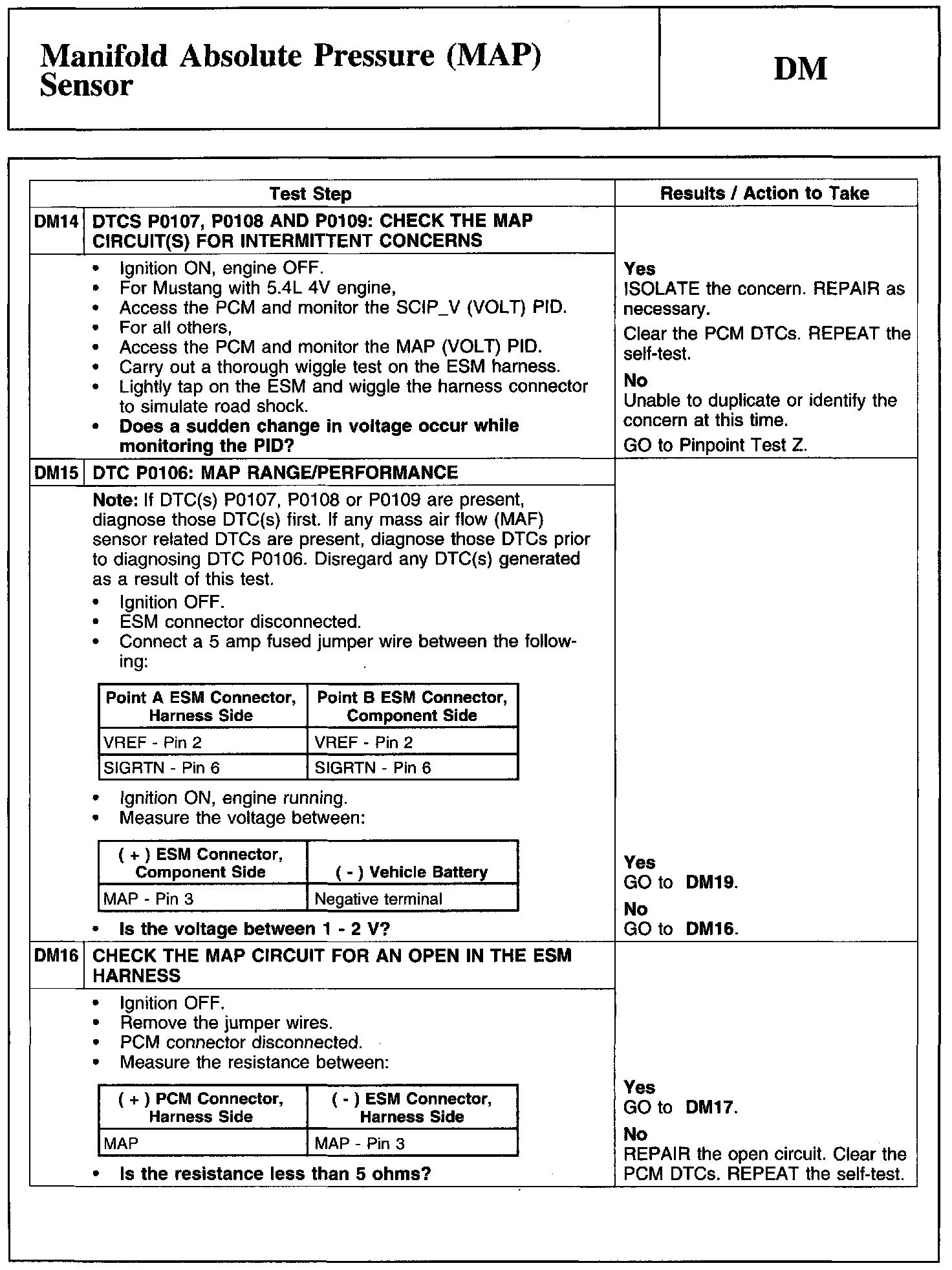 Test DM: Manifold Absolute Pressure (MAP) Sensor
